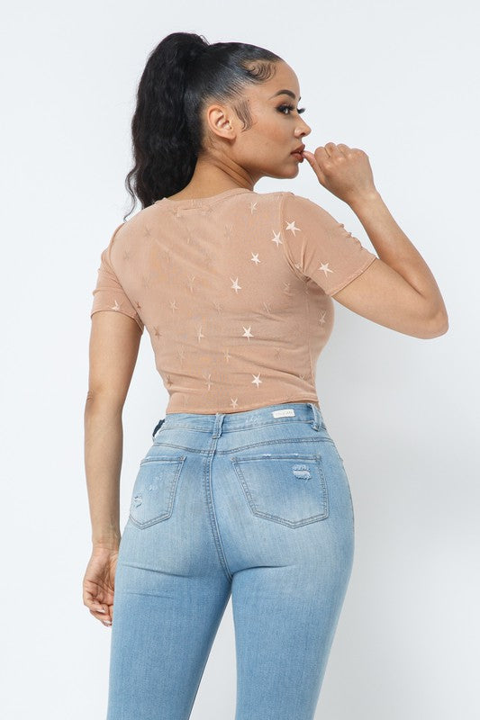 Mesh Front Tie Star Top